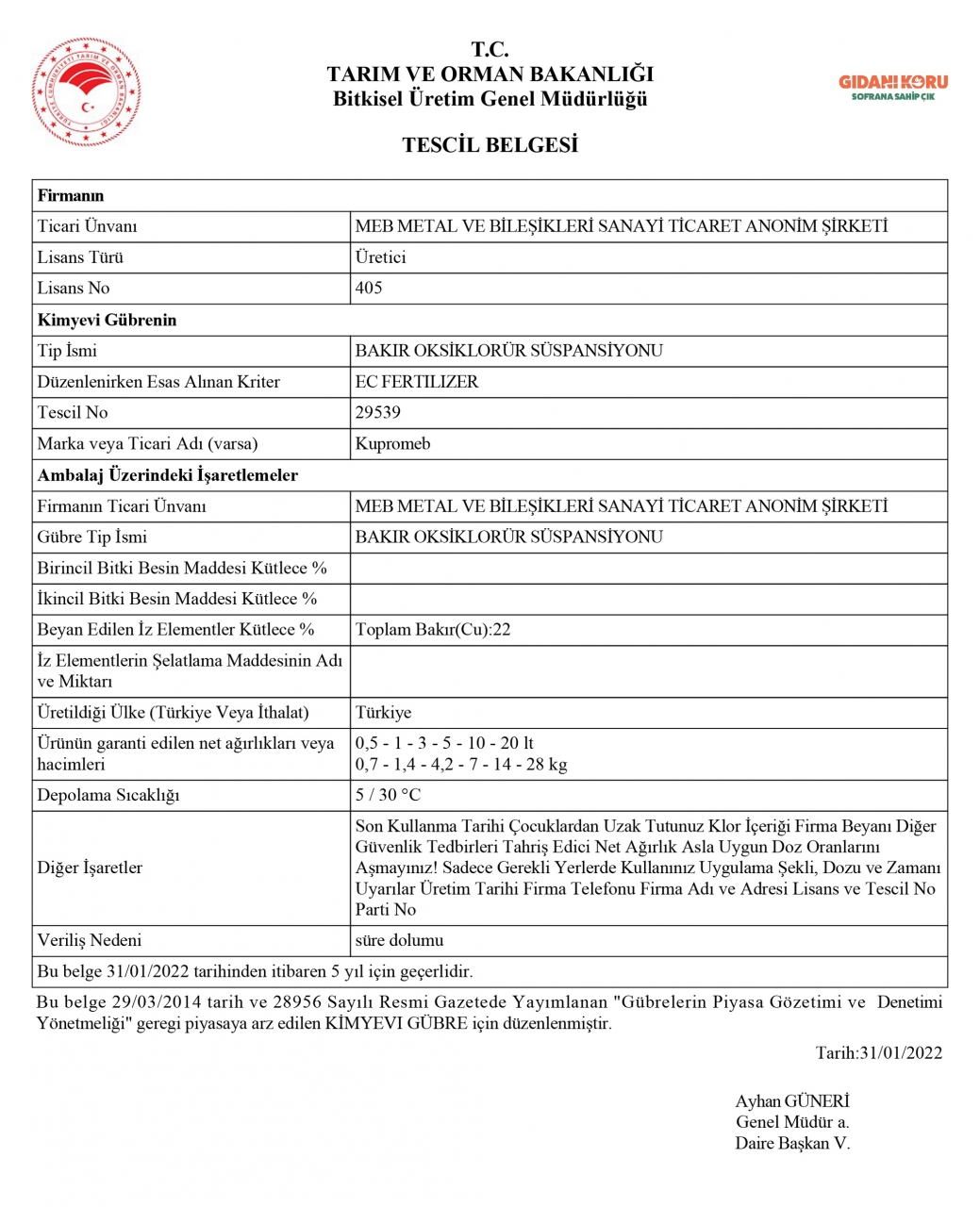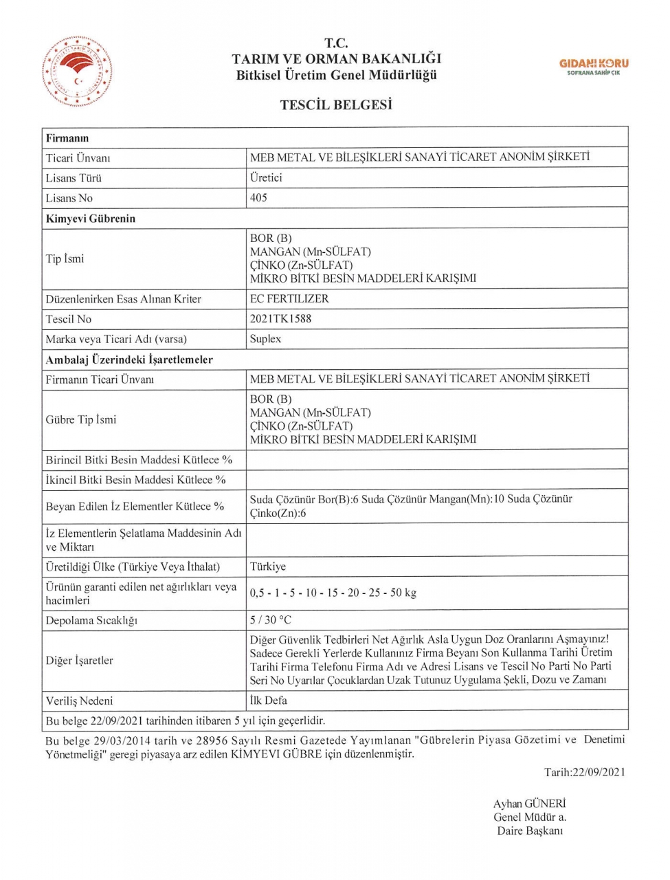 MEB % 10 Zn TESCİL KUPROMEB TESCİL