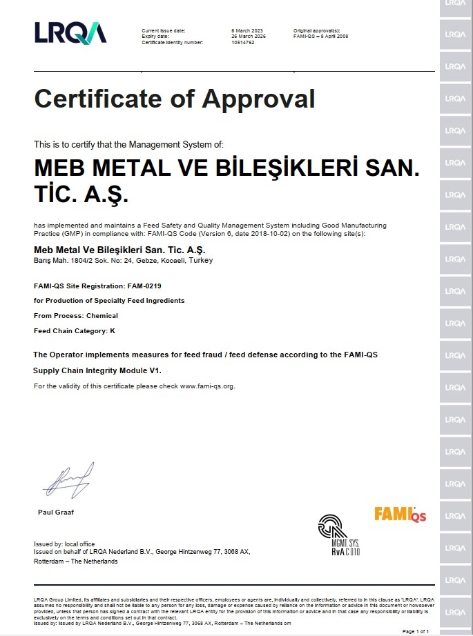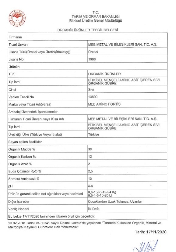 ORGANİK TESCİL BELGESİ MEB AMİNOFORTİS