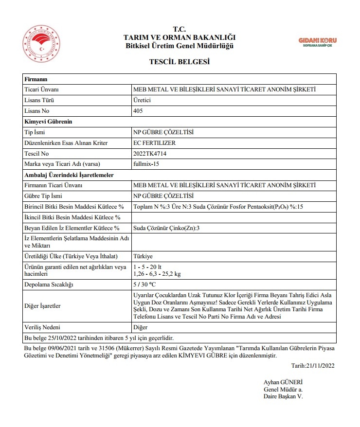 AZOTOMEB TESCİL FULLMİX-15 TESCİL