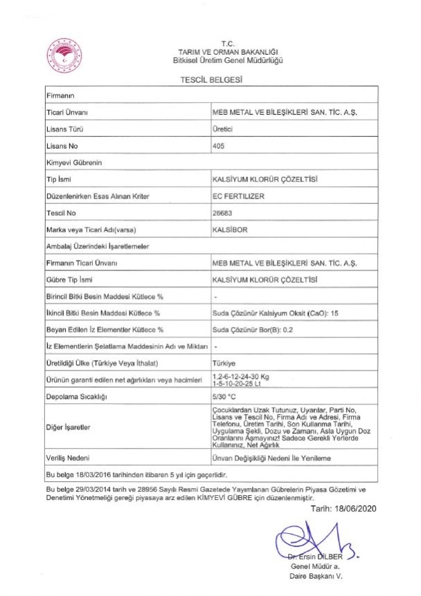 MEB NUTÜRE TESCİL KALSİBOR TESCİL