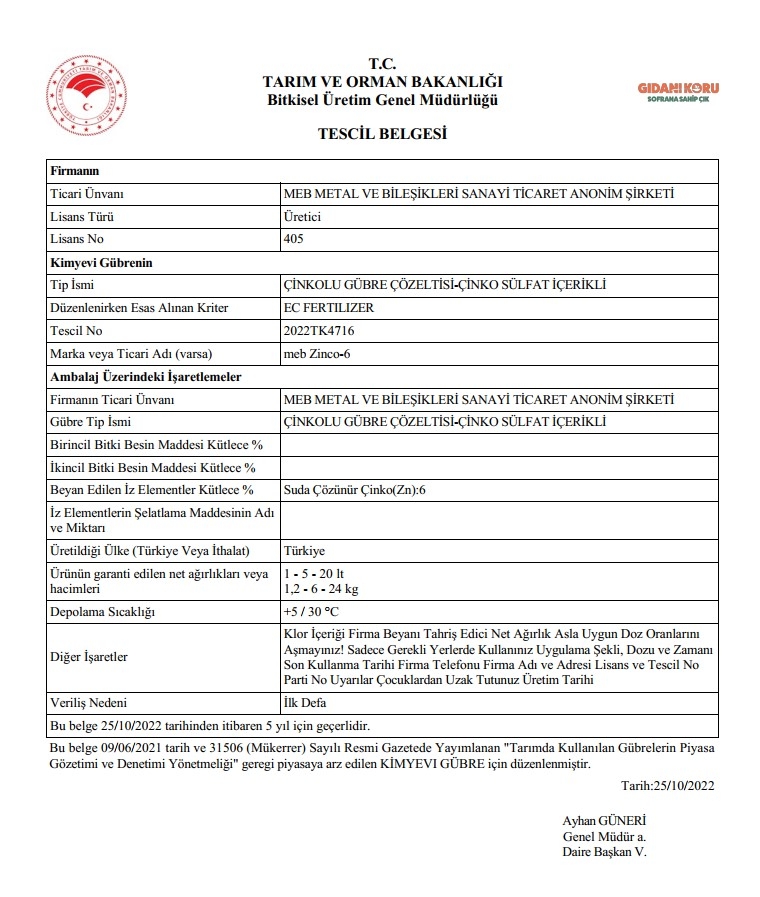MEB Zinco-6 TESCİL AZOTOMEB TESCİL